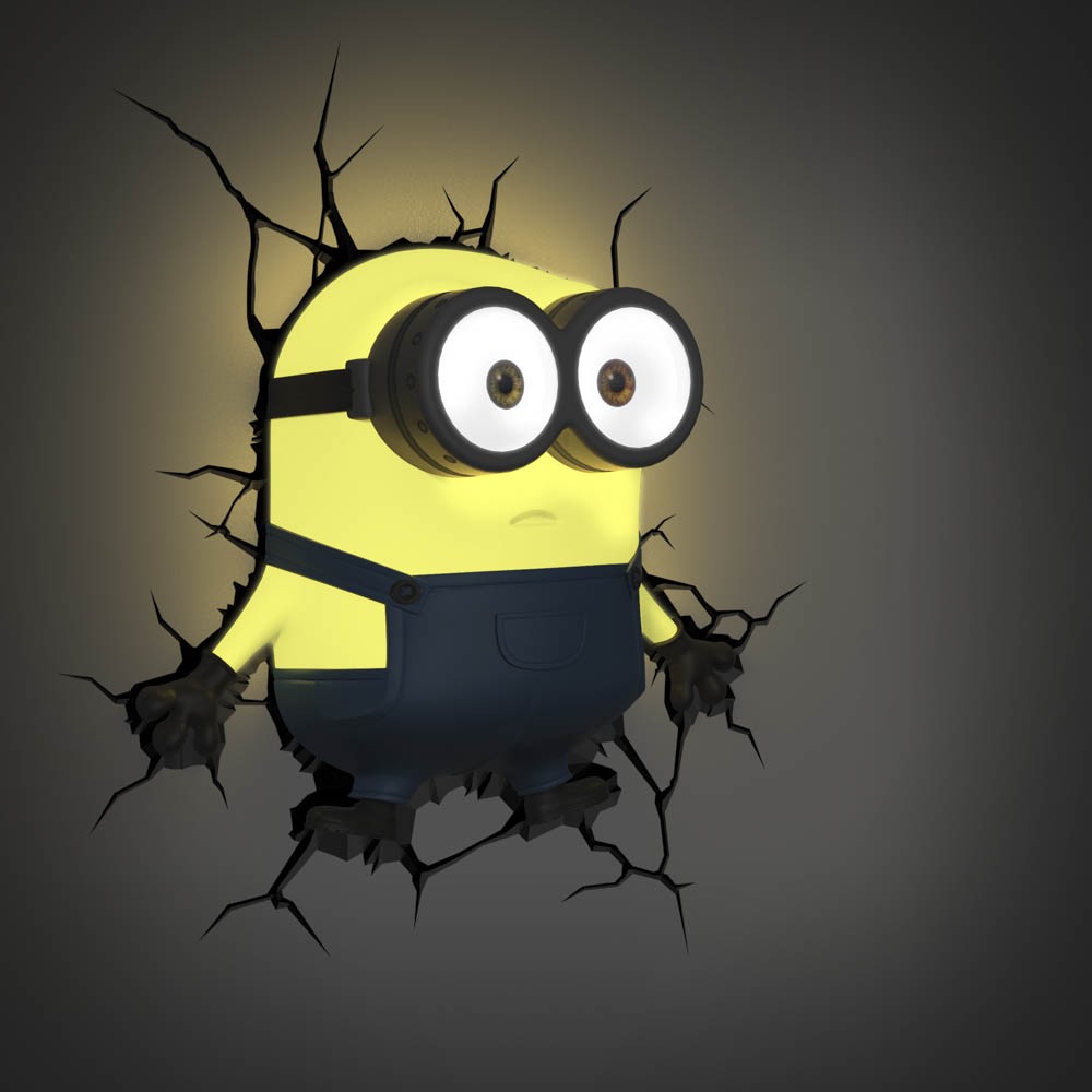 Diese phantasievolle Beleuchtung sorgt in den Nachtstunden mit ihrem Licht für eine abenteuerliche Umgebung. Damit ist Bob von den Minions für alle greifbar. Durch den mitgelieferten Wandsticker in Rissoptik wird diese Lampe noch eindrucksvoller und realistischer.