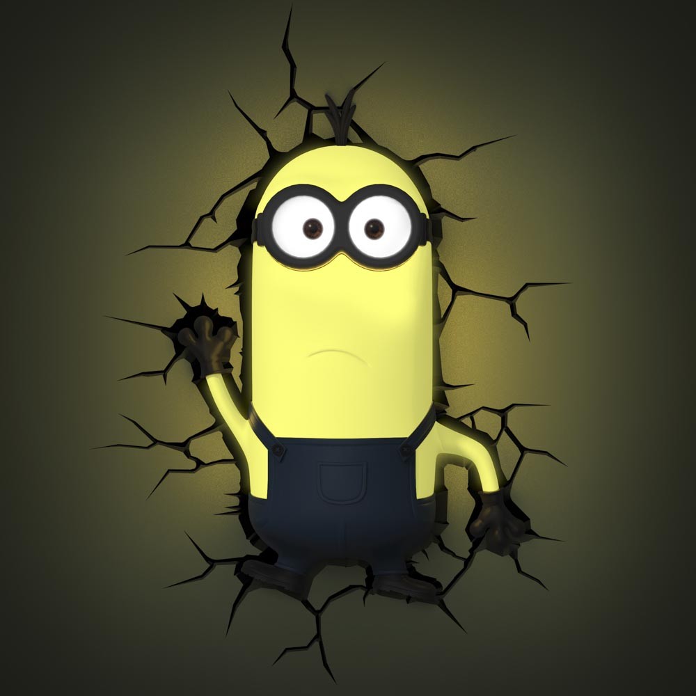 Diese phantasievolle Beleuchtung sorgt in den Nachtstunden mit ihrem Licht für eine abenteuerliche Umgebung. Damit ist Kevin von den Minions für alle greifbar. Durch den mitgelieferten Wandsticker in Rissoptik wird diese Lampe noch eindrucksvoller und realistischer.