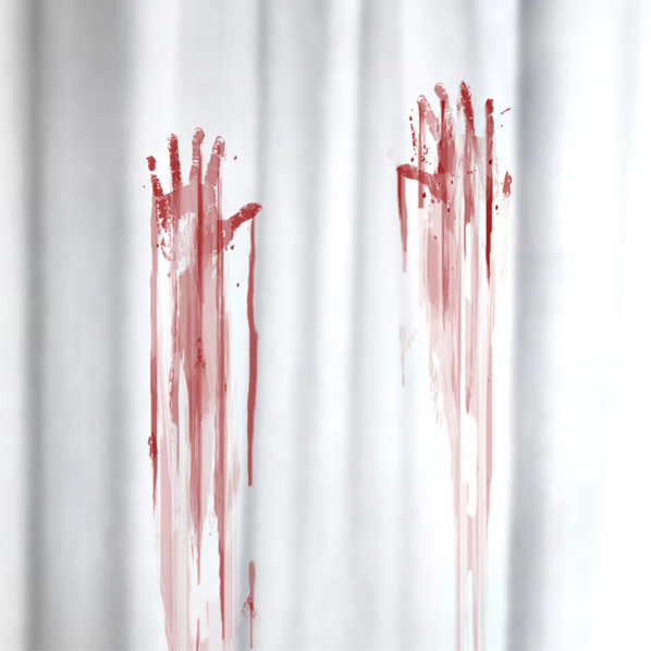 Kultiger Duschvorhang mit blutigen Handabdrücken